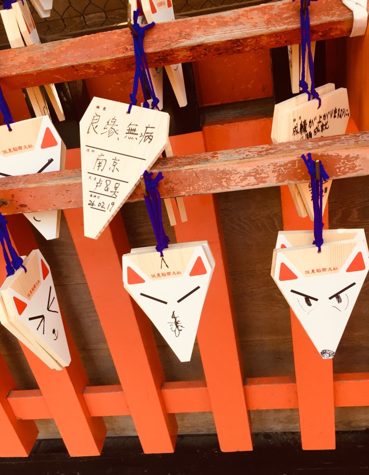 (Photo: prayers offered at Fushiminarii Shinto shrine. Fox revered here as messenger from God)
