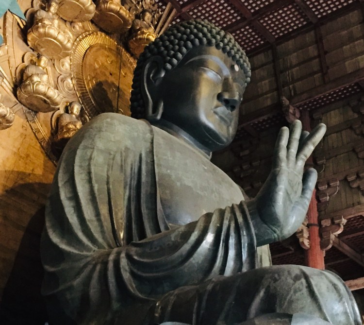 Yesterday, while visiting Nara’s Todai- ji Temple, I took advantage of the offer of a free personal guided tour. The aptly named Sachiko (“Happiness”) was my smiling guide and together we roamed the grounds – two middle-aged women from different cultures, sharing laughter and learning, together. It felt very real.