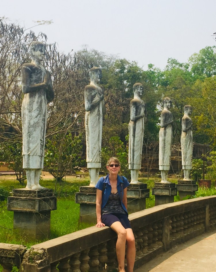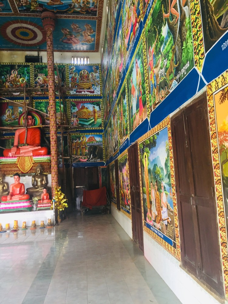 My final day in Battambang, the power was out again, so I wandered. I do not feel afraid in this country and find people friendly. The children holler “Hello!” and the women return my smiles. Wandering lead me to the small but beautifully curated Battambang Provincial Museum stuffed with priceless artifacts from Cambodia’s past (fortunately the Khmer Rouge did not destroy most of the country’s treasures). I also found a wonderful temple complex, Sangke Temple, not listed in any guidebooks. (Battambang is like that. It is not yet a tourist staple and is filled with little discoveries). While browsing there, a young Cambodian man asked me where I’m from. It turned out that he is a teacher who volunteers time teaching the children of poor families who care for the temple grounds. He showed me the little school, and when I asked him if I could give a donation for the school, he declined, saying that he had everything he needed. I asked if any of his students needed supples and only then did he agree to take money to buy something for them.
